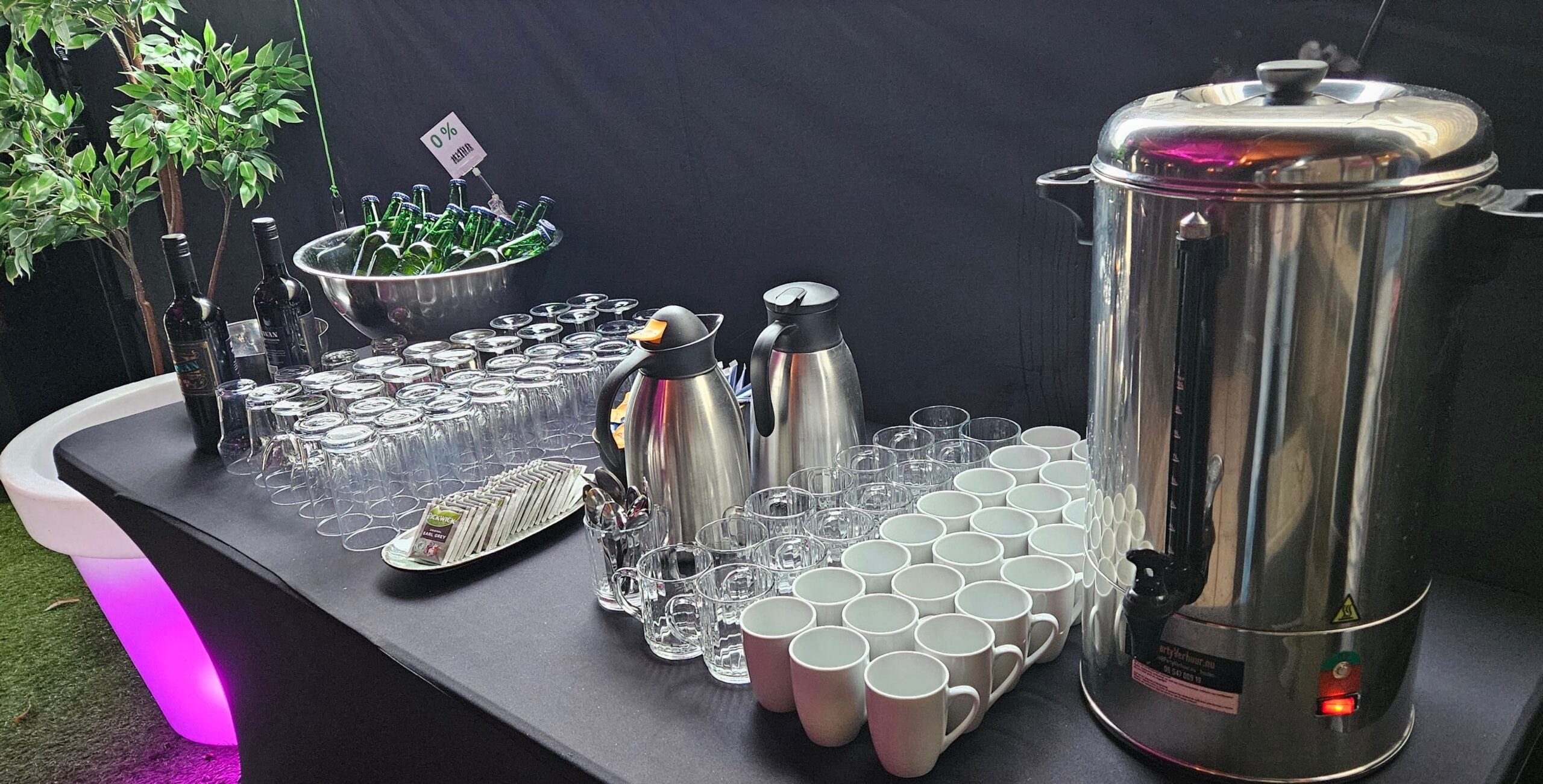 Koffie/thee erbij? Inclusief mokken/theeglazen, percolator en toebehoren.