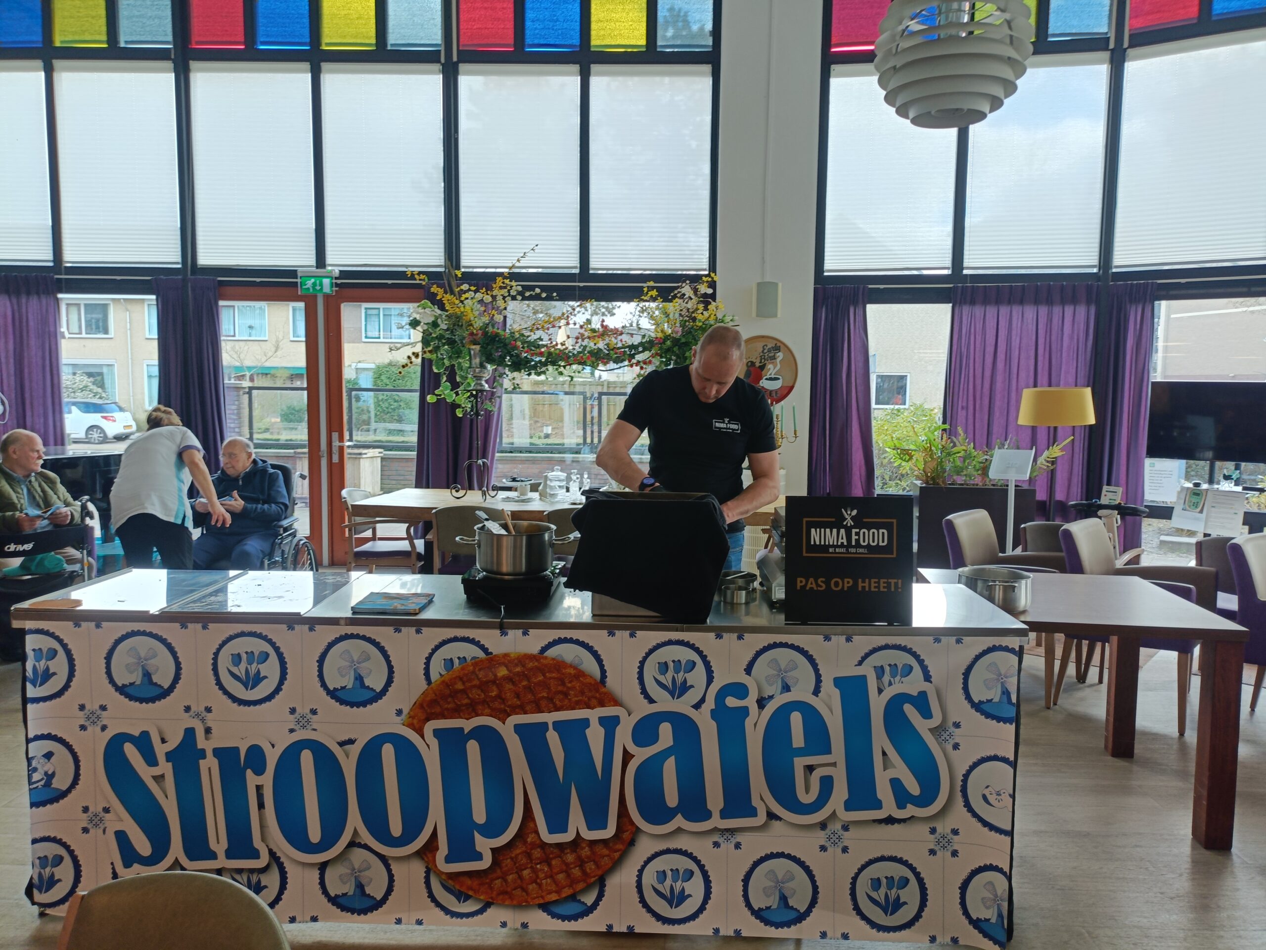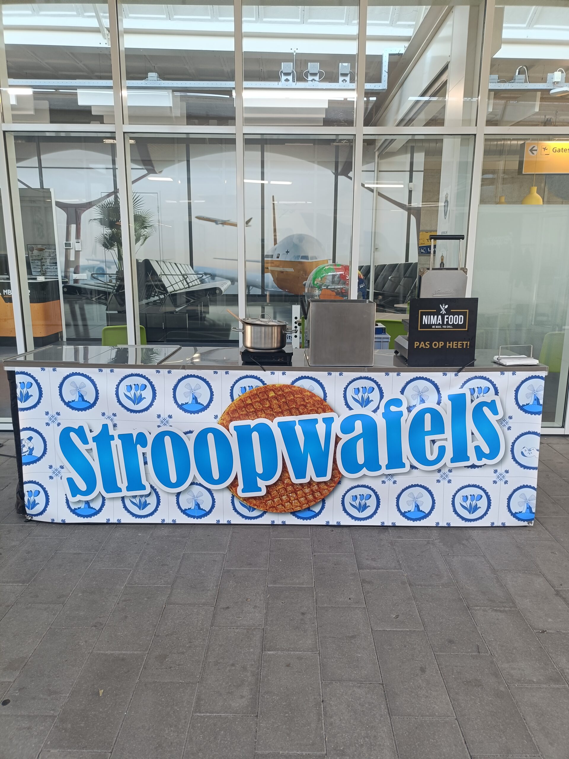 Ook binnen kunnen we de beleving van verse stroopwafels verzorgen. Onze compacte binnenopstelling is veilig en netjes, perfect voor bedrijfsfeesten, winkelcentra of andere binnenlocaties.