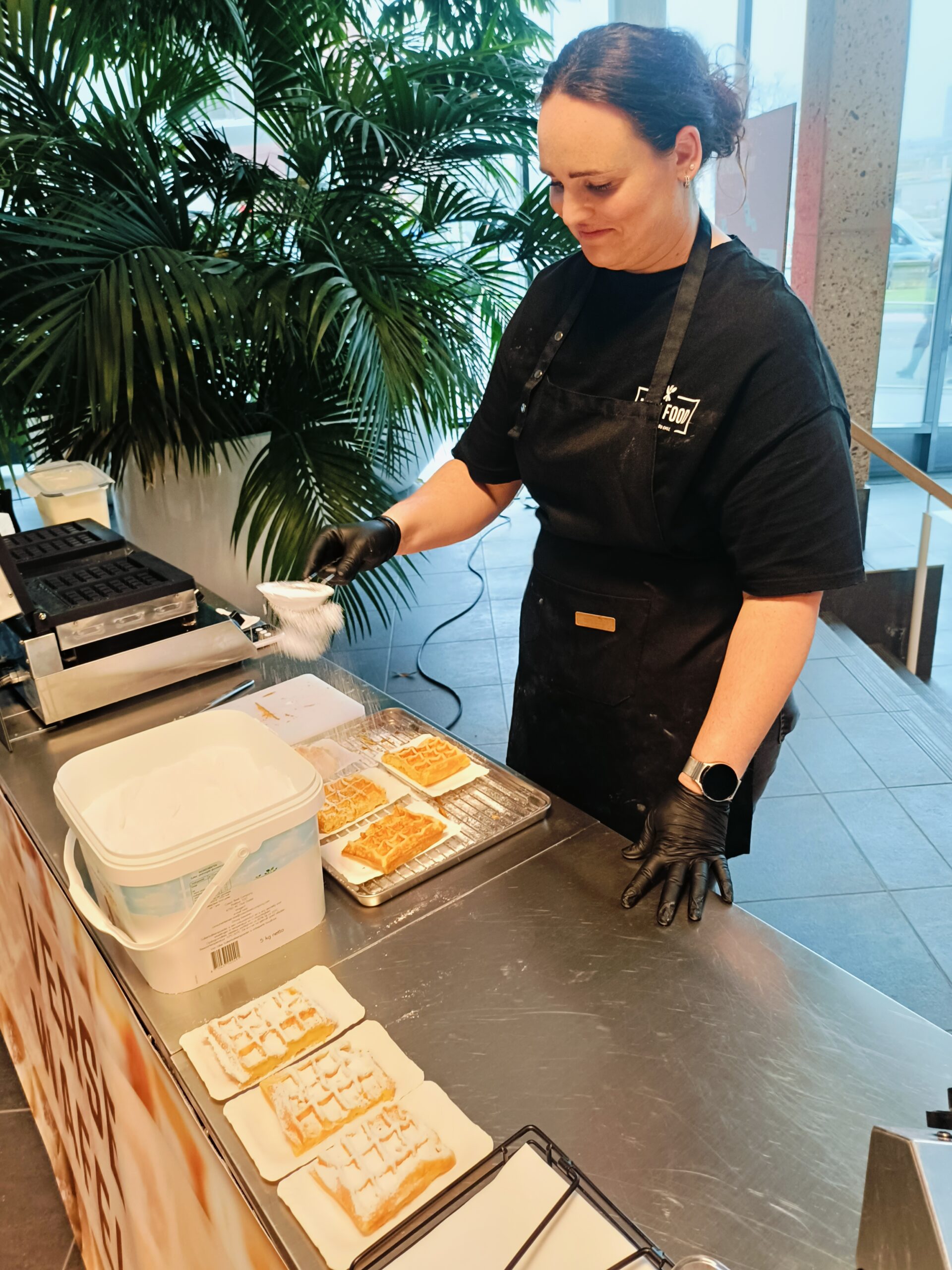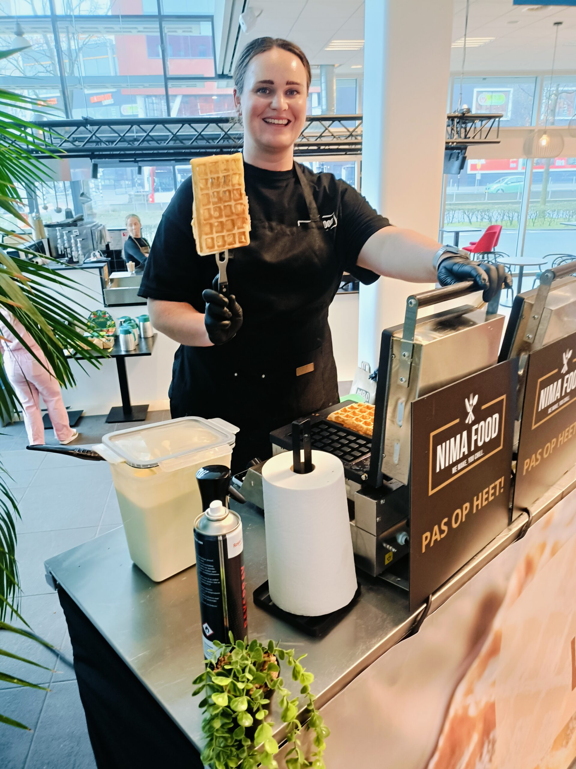 Ook binnen verzorgen we verse wafels op een schone, veilige manier. Perfect voor bedrijfsfeesten, beurzen of winkelcentra.